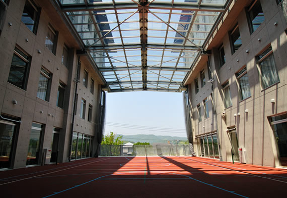コートは全天候型で、様々な運動ができるスペースになっております。